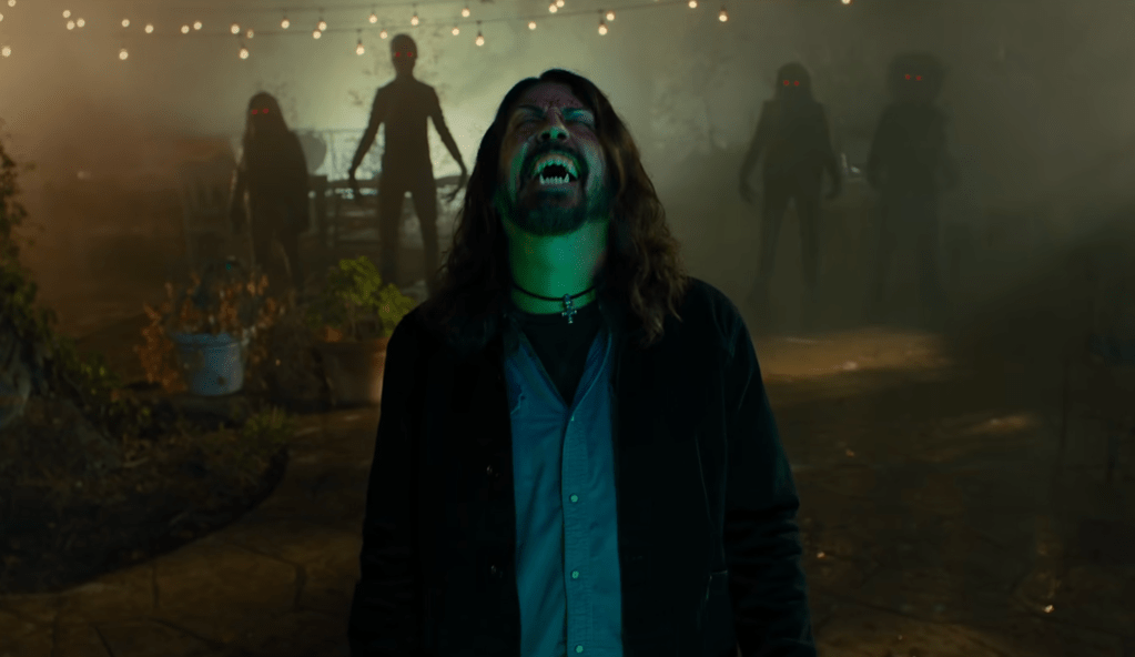 In the film the Foo Fighters (all six current band members starring themselves) move into a a mansion to record their highly anticipated tenth studio album. The mansion turns out to be haunted. In fact, it’s where the legendary band Dream Widow perished in a murder. Dave Grohl, who is supposed write the songs, is experiencing writing constipation and as strange things start to happen in the house he ends up possessed by supernatural powers. The band begin to record a song that never ends and cruel and (very) bloody events follow their efforts to finish the song.