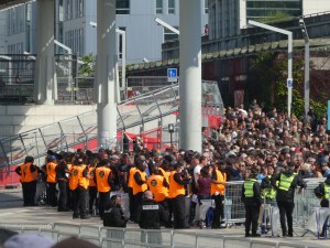 Cut forward to show day and the final roll call 1pm, where a long dayโ€™s wait became even longer and frustrating due to lack of organisation and information from the arena security. The volunteer fans had done their job nicely but then we were lined up and security took over we were moved around like sheep from one stockyard to another and had to sit/stand in the scorching sun for hours.