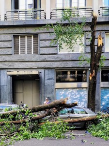 We were sleeping safely in our hotel in Milan when we heard the storm hit the city. Later we were woken up by a bright spotlight, a kind of an emergency light, which was impossible to turn off. It was pointed directly at our bed making it hard to sleep (first world problem, I know). Later on that day, when we walked towards the shuttle pick-up point, we saw the mess the storm has caused in central Milan.