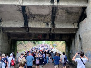 Yes, I did mention a shuttle. We were far better prepared for this adventure than for Hockenheim. Oliver had connected beforehand with some fellow Springsteen fans on BTX, who were willing to share the cost of a shuttle that would take us to and from the concert. At about 3pm the seven of us set off towards the venue. We were dropped off in a small village close to the site and then we walked the rest of the way. After a while we reached a large field with food and beer stalls and a lot of people. The longest queues were at the stalls where you bought tokens, since you couldnโt pay with cash or cards.