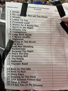 Bruce doesn’t talk much before, between and after the songs anymore. His speech before Last Man Standing is so well-rehearsed it feels like he’s on autopilot and, to me, the words lose the meaning a little bit. When the song Long Walk Home was introduced as “a prayer for my country” on Monday’s show it got attention and people connected it to the recent events in the American political world (i.e. the assassination attempt of Donald Trump). The day after the show it was even mentioned in media abroad. This is a short article by Chris Jordan from The Asbury Park Press. Guess who is quoted in that article? On Thursday’s show Long Walk Home was introduced in the same way and played as the third song of a fantastic sequence together with Atlantic City and Youngstown.