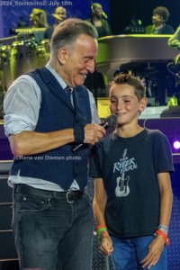 Everything doesn’t have to be perfect. In fact, small errors and some spontaneity make the shows unique and memorable. This show had some of that. For example during Waiting On a Sunny Day, where Bruce seemed to forget some of the lyrics or mess up the arrangement of the song, which was pointed out by Stevie. In the end they just laughed, Bruce said “fuck it” and threw away his guitar before walking down to the lower platform. By the way, you know I don’t normally like when a child is picked to sing along, but this time a cute boy was brought up on stage and he did a really good job. Later I read in an article that the guy (Daniël Bergsma, 10, from the Netherlands) isn’t a rookie at all. He sang Waiting on a Sunny Day already in Nijmegen this year, and again the other day in Bergen. I guess we could call him a veteran now or maybe he’s a new fixed part of the show.