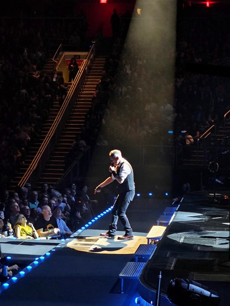 20 November, 7:44 pm- lights out and then movement on stage. From our seats, in the stands on the right side of the stage, we couldn’t see exactly but we knew that the stage was slowly filled with people. In the darkness I saw the contour of Max climbing up to his drumset and Roy finding his place at the piano and synthesizer. Second to last Stevie van Zandt came and I vaguely recognised him waving his hat, then I heard a massive roar from the audience “Bruuuuuuuce!”. For someone who have never been to a Springsteen show the characteristic holler might be perceived as an exensive boo, but it wasn’t. It was the sound of 20,000 hopeful and excited spectators on a Bruce Springsteen concert in Rogers Place, Edmonton, Canada. Then he was finally there, standing at the microphone bathing in the limelight, Bruce Springsteen!