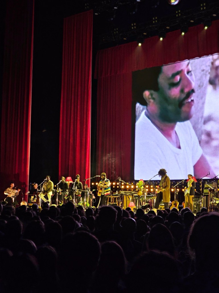I must admit I wasn’t a fan of the segments where videos were shown on the backdrop. I assume they were meant to emphasis the lyrics, but for me, they were more of a distraction. Instead of focusing on the words, as I usually do, I found my attention drawn to the moving images. And that was a shame, because Kiwanuka’s lyrics deserve to be heard.