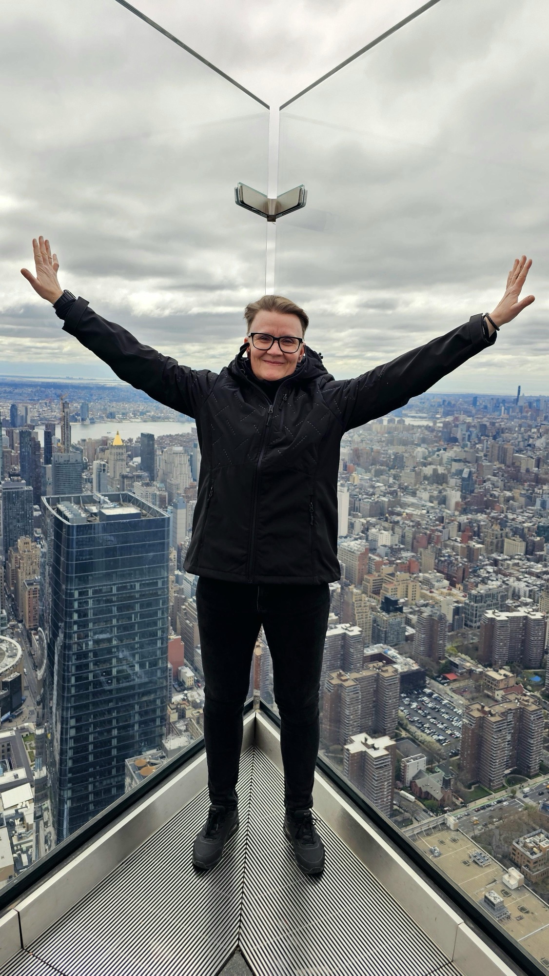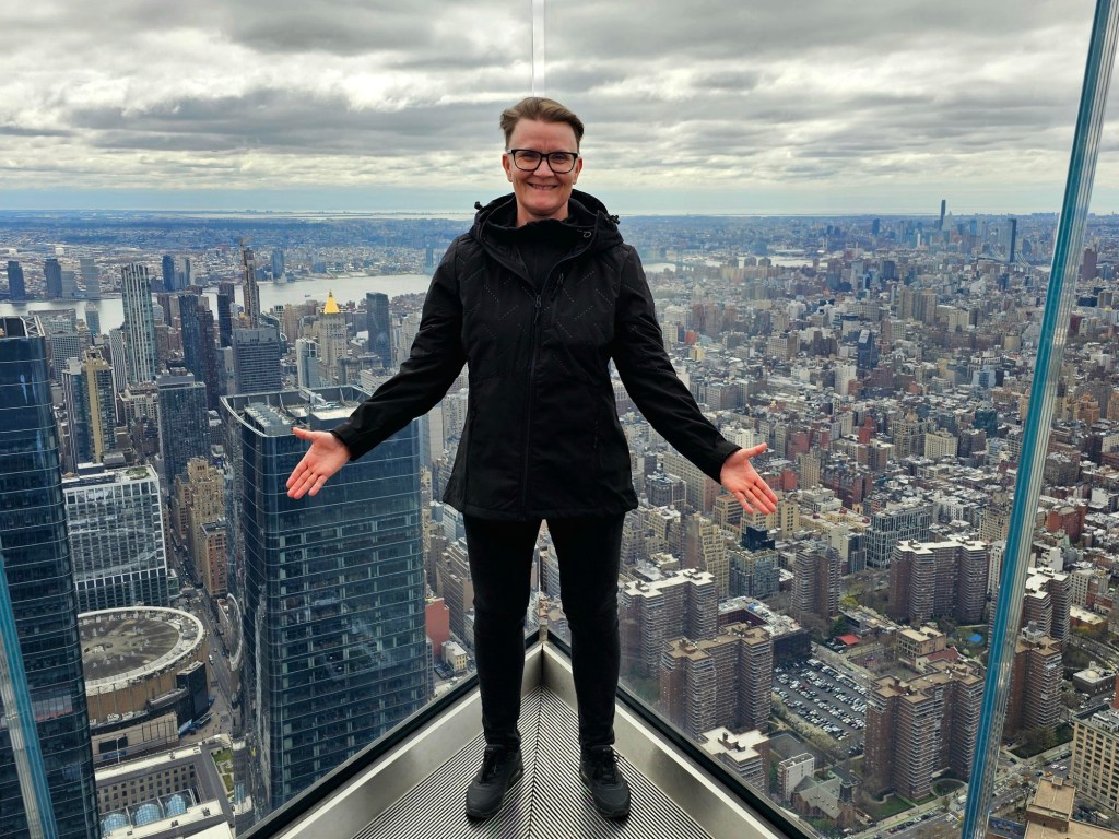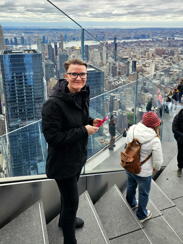 One of the things we had really looked forward to was visiting one of New Yorkโs high viewpoints. After going back and forth a bit, we had decided on Edge, and Iโm glad we did. Iโve been to the Empire State Building before, and honestly, this felt like a better spot. The Empire State Building is a global icon and a must, but the Edge is slightly cheaper (Edge from $30 and ESBNYC from $44) and also cooler. Like the Empire State Building, it has an outdoor deck, but Edge adds a bit of extra drama โ a glass floor you can (carefully) step out on, and tilted glass walls that make you feel like youโre floating above the city. A bit terrifying, yes, but also kind of amazing although the glass floor was a lot smaller than we had expected. I ended up buying a T-shirt from the gift shop.