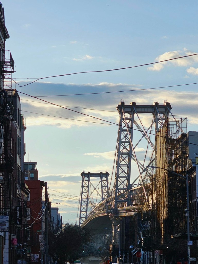 We caught a DUMBO (a ferry) from the pier to South Williamsburg. The ride offered a different view of Manhattan as the sun was beginning to set. That evening, we had tickets to a concert in Brooklyn โ but more on that in another blogpost!