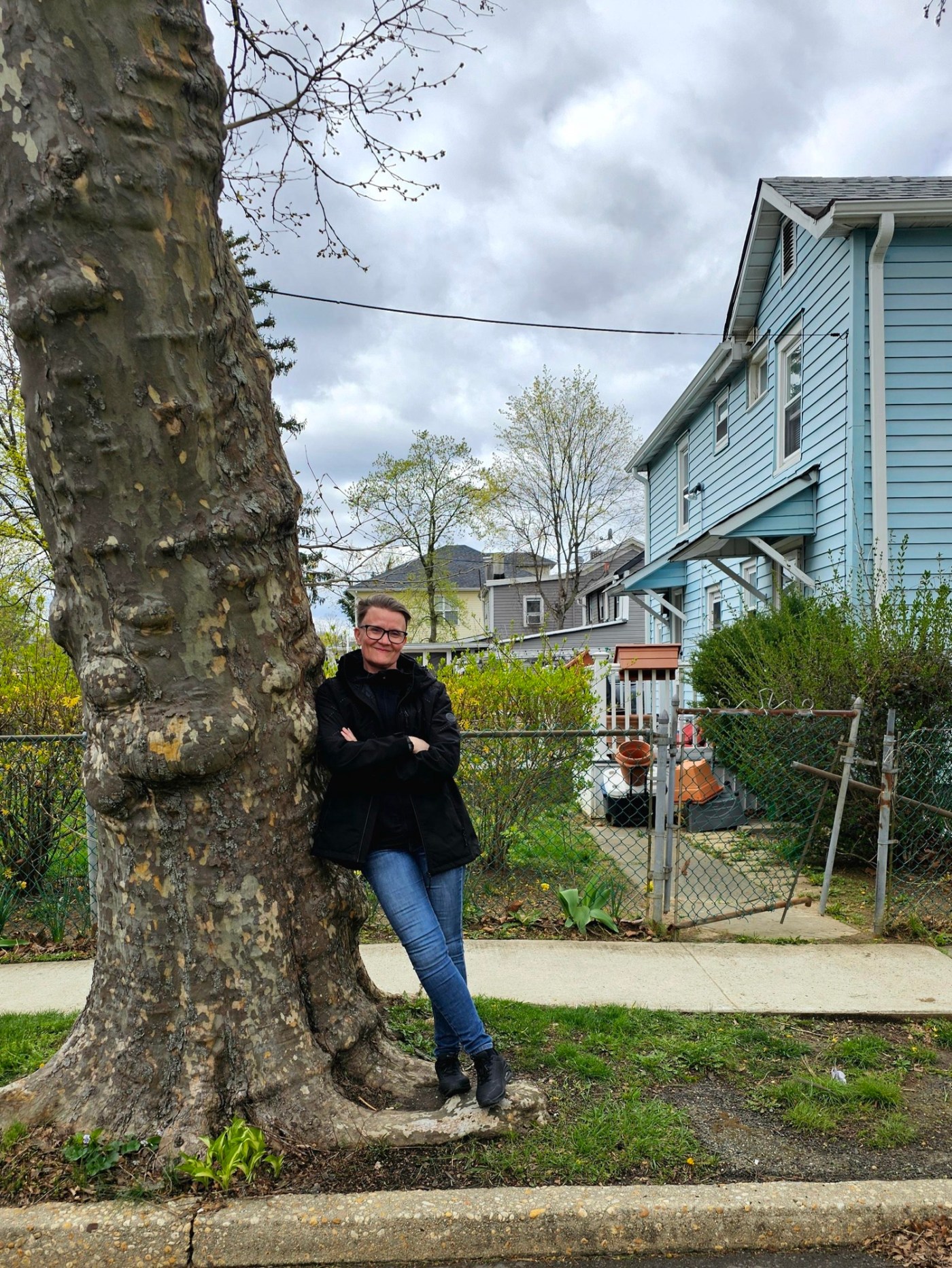 In Freehold, we saw the neighbourhood where Bruce grew up; the site of his first home on Randolph Street (the house has been torn down) and the house at 39 ยฝ Institute Street where his family moved in 1958. Oliver helped me to replicate a classic photo of Bruce (that is on the liner notes of his โ€œBorn in the U.S.A.โ€ album), leaning against a tree in front of the house.