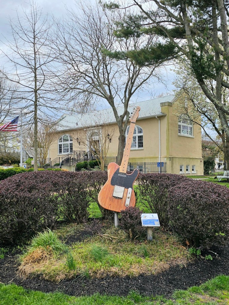 One of the stops I appreciated the most was the famous crossroads of 10th Avenue and E Street in Belmar (Stan jokingly called it “the Springsteen fanโ€™s walking-across-Abbey Road shotโ€). It was tucked into a quiet residential neighborhood. Former bandmate David Sancious lived there with his mother, and according to Stan, the E Street Band got its name not because they rehearsed there a lot, but because Dave was always late. The other band members spent a lot of time in the car outside his house waiting for him. It goes without saying that we hopped out of the car to take the obligatory photos of the street sign and a giant replica of Springsteenโ€™s famous Fender-Esquire guitar.
