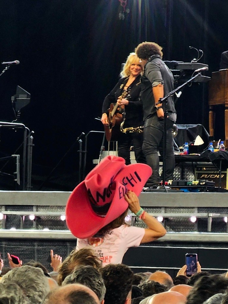 When we set out to get a feel for the city, Oliver and I casually, purposely passed by Bruce’s hotel 😃. The front entrance was packed with fans hoping for a glimpse, but we wandered around to the quieter back entrance instead. That’s where I spotted background singer Lisa Lowell walking out. No one else seemed to recognise her. Most people were probably on Bruce-watch so I just said, “Hi, Lisa! See you tonight.” She smiled back.