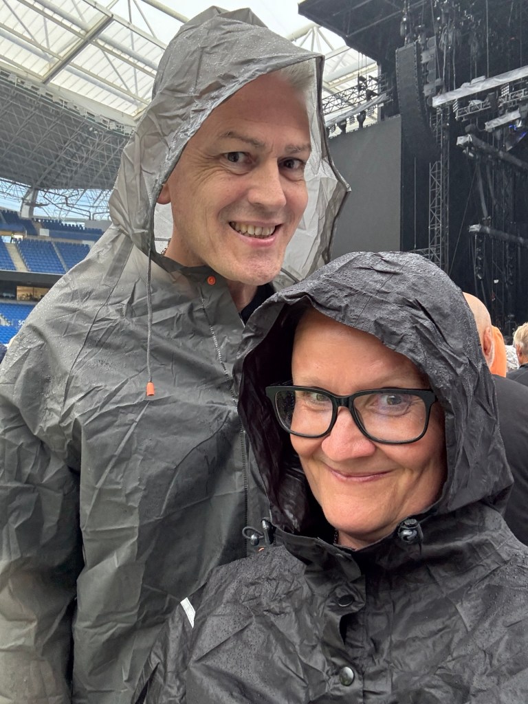 Just as we entered the Estadio Reale Arena, a light rain started to fall (ponchos out!), and it kept raining on and off throughout the night. The concert itself was solid, but our spot wasn’t ideal. In front of us were two men with their non-Springsteen-fan wives (?), who spent most of the show taking selfies and even started arguing loudly during Bruce’s heartfelt and important speech before My City of Ruins. Even when people around them tried to hush them, they wouldn’t stop. That’s when Oliver had enough and moved further back and, after a while, I followed him.