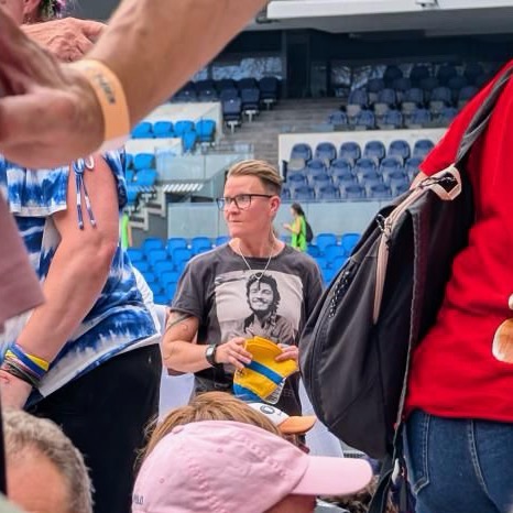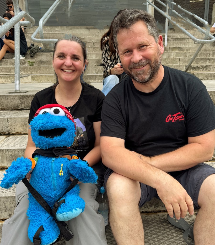 While waiting around in the line, you always meet new people and sometimes even unexpected celebrities. At one of the Roll Calls, I suddenly recognised The Cookie Monster. Not the real one, of course, but a bright blue Cookie Monster backpack that I’ve seen many times on the big screen when the cameras show the crowd. His humans, Susanne and Michael from Munich, told me he first came along in 2023, and his second show was actually in my hometown, Gothenburg. They noticed he looked great on screen, and while they’re quick to say it’s all about Cookie, I think they also enjoy the bit of attention he brings their way. Naturally, I had to get a photo.