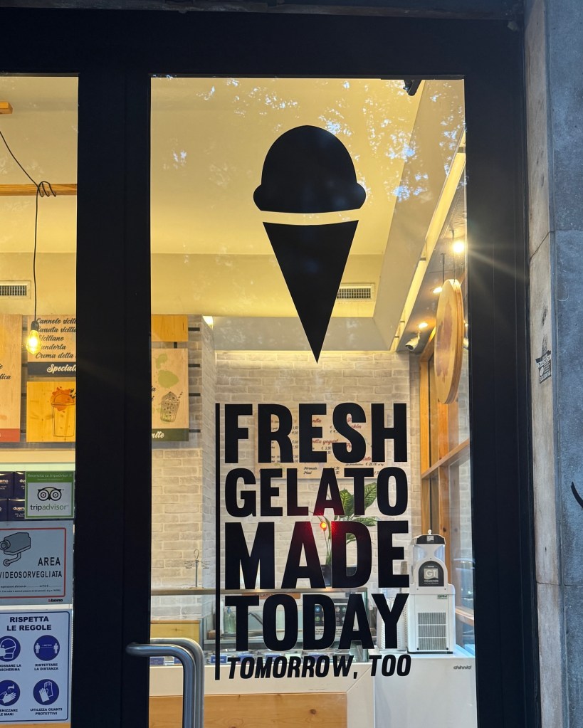 Before meeting up with Werner, we couldnโt resist another gelato, this time from Duomo Gelateri. Their ice cream was smooth as silk, and the dark chocolate in particular had a deep, rich taste, a proper treat. Places like that are everywhere here; it seems thereโs an ice cream parlour on every corner. The Italians really love their gelato, and they take pride in making it themselves.