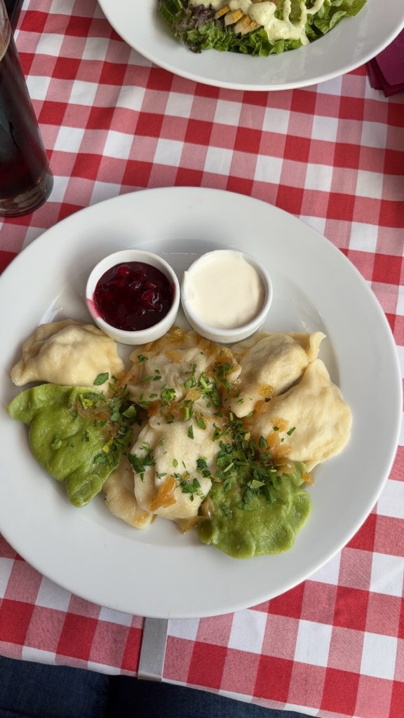 We stayed there (even though it was also a bit of a tourist trap) and found a place serving local food called Specjały Regionalne. I had pierogi (Polish dumplings), which I think are delicious.