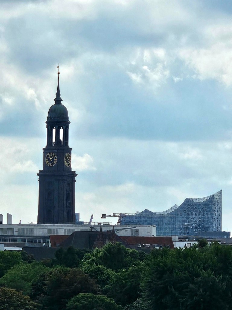 On Sunday, after we had checked out, Oliver and I made our way to the Elbphilharmonie, which is a renowned concert hall in the HafenCity quarter. We collected free tickets to the Plaza, the public viewing platform, which sits 37 meters above ground level between the historic brick warehouse base and the modern glass structure above. From there you get a 360ยฐ panoramic view of the city and harbor.