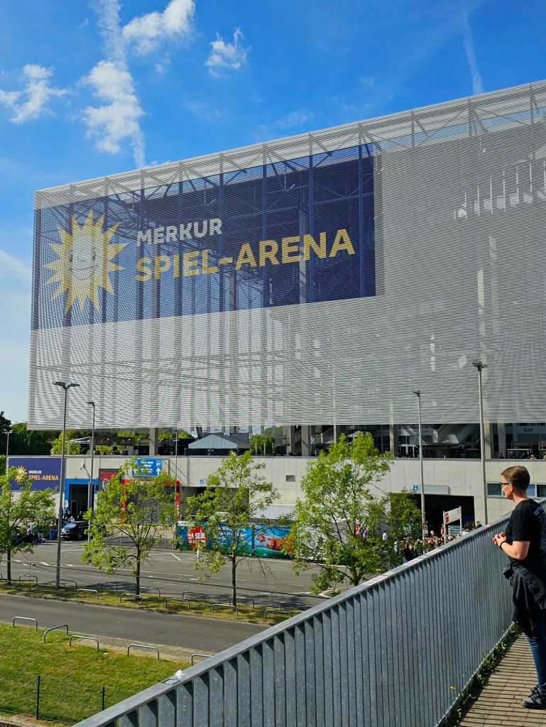 After a lazy morning we met up with Carina at Köln Hauptbahnhof to catch the regional train to Düsseldorf. Carina and Oliver used their Deutschlandticket, while I had downloaded an ÖPVN-ticket from Eventim’s website. It’s a service in cooperation with Deutsche Bahn that gives you free public transport to and from the concert. Already upon arriving in Düsseldorf we could tell how well organised everything was. Staff from the Ordnungsdienst were stationed at the main station and at every stop along the way to the stadium, making sure everything ran smoothly.